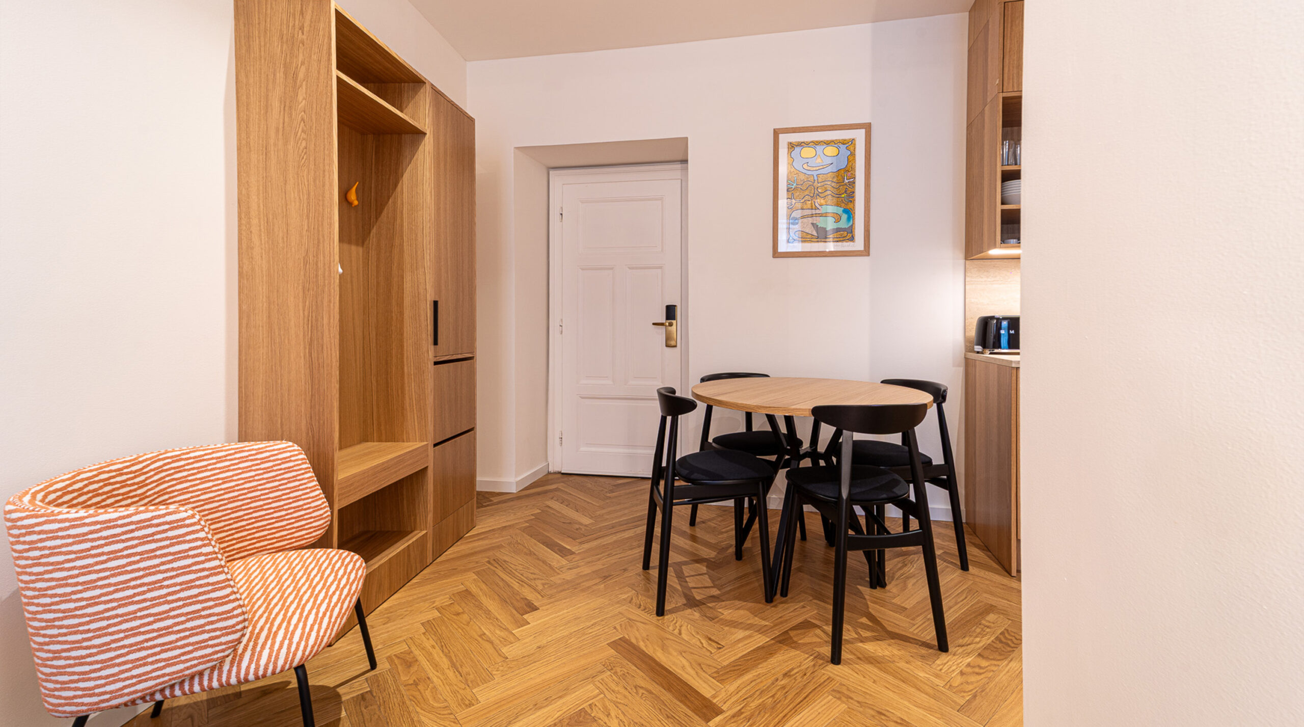Experience the convenience of a fully equipped kitchenette and modern amenities, ensuring a memorable stay in Prague.